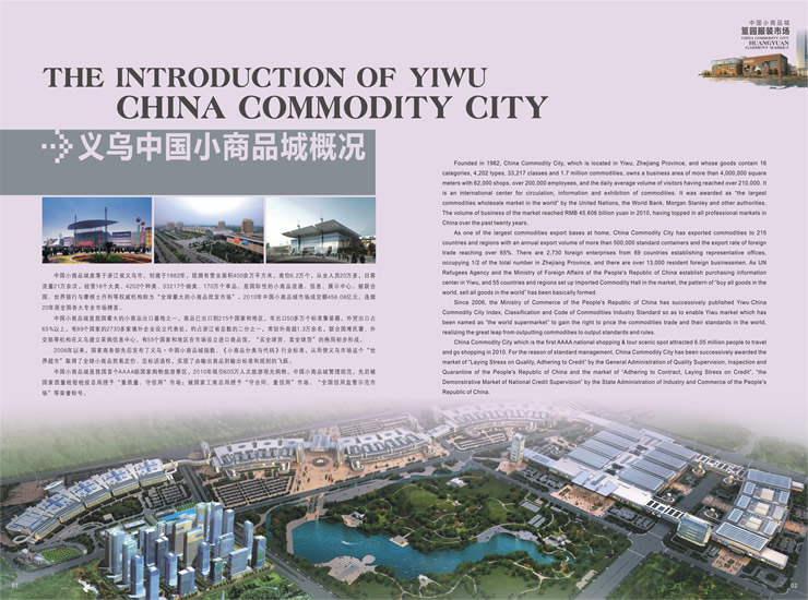 中國小商品城篁園服裝市場地處義烏最為繁華的繡湖商圈,市場總占地117畝,總建筑面積42余萬平方米,總投資14億,余2011年4月份投入使用。篁園服裝市場定位為專業(yè)服裝市場,符合市場國際化、品牌化、多元化的發(fā)展趨勢,有利于提升義烏服裝市場的競爭力,推進專業(yè)化、規(guī)?;l(fā)展。 為優(yōu)化行業(yè)布局,強化競爭實力,突出規(guī)模優(yōu)勢,凸顯市場商機,篁園服裝市場1-5樓布局男裝.皮裝;女裝;童裝;牛仔.褲;睡衣.羊毛衫.運動服.襯衫共5個經(jīng)營類別。
